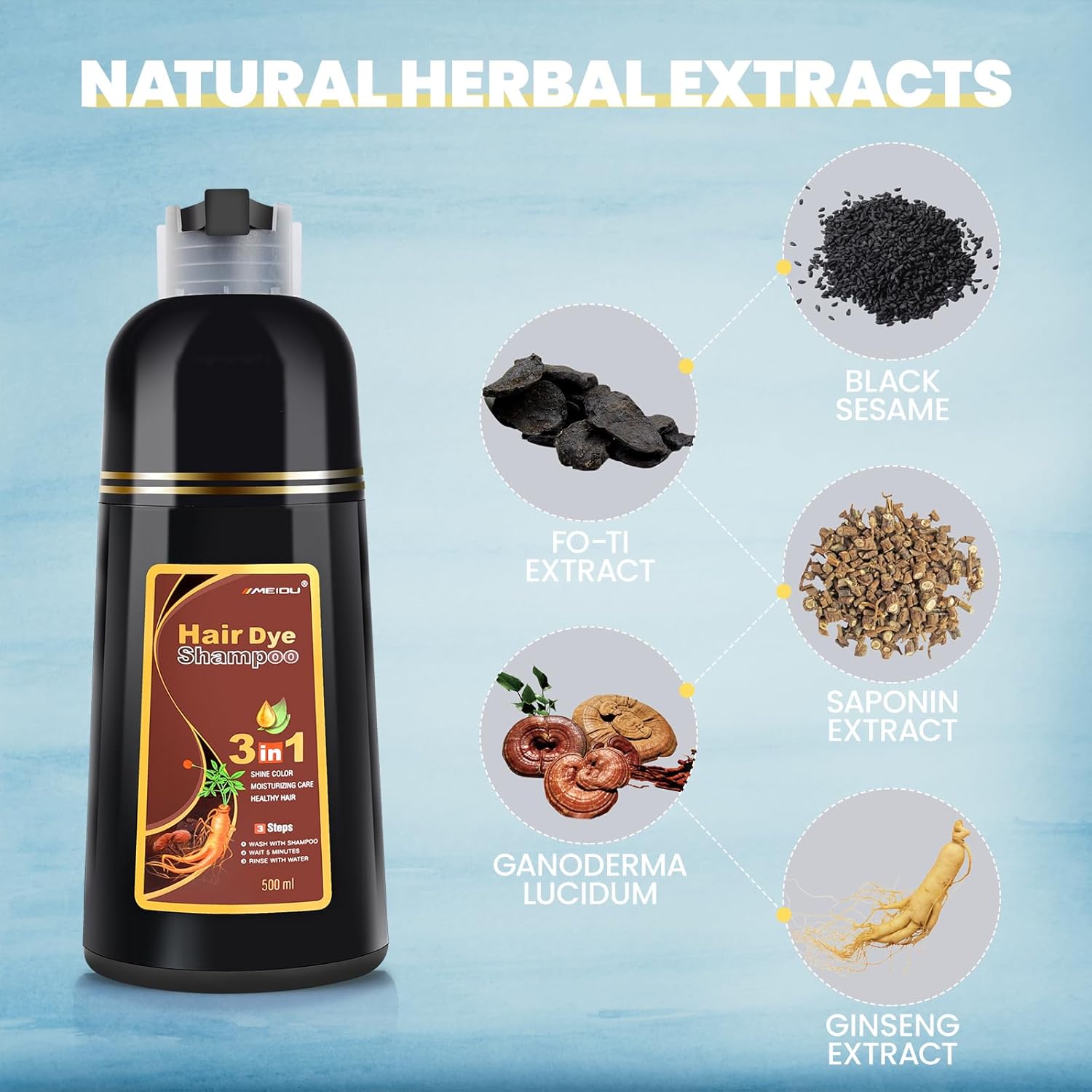 - Meidu hair dye color shampoo instant 3in1 for both women and mento cover gray hairs and last up to 4 weeks